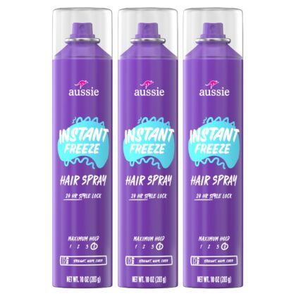 • Aussie Instant Freeze Hair Spray for Extreme Hold, Infused with Jojoba Oil & Sea Kelp, Long-Lasting All-Day Hold, Fresh Citrus Scent, Safe for All Hair Types, 10 Fl Oz, 3 Pack
